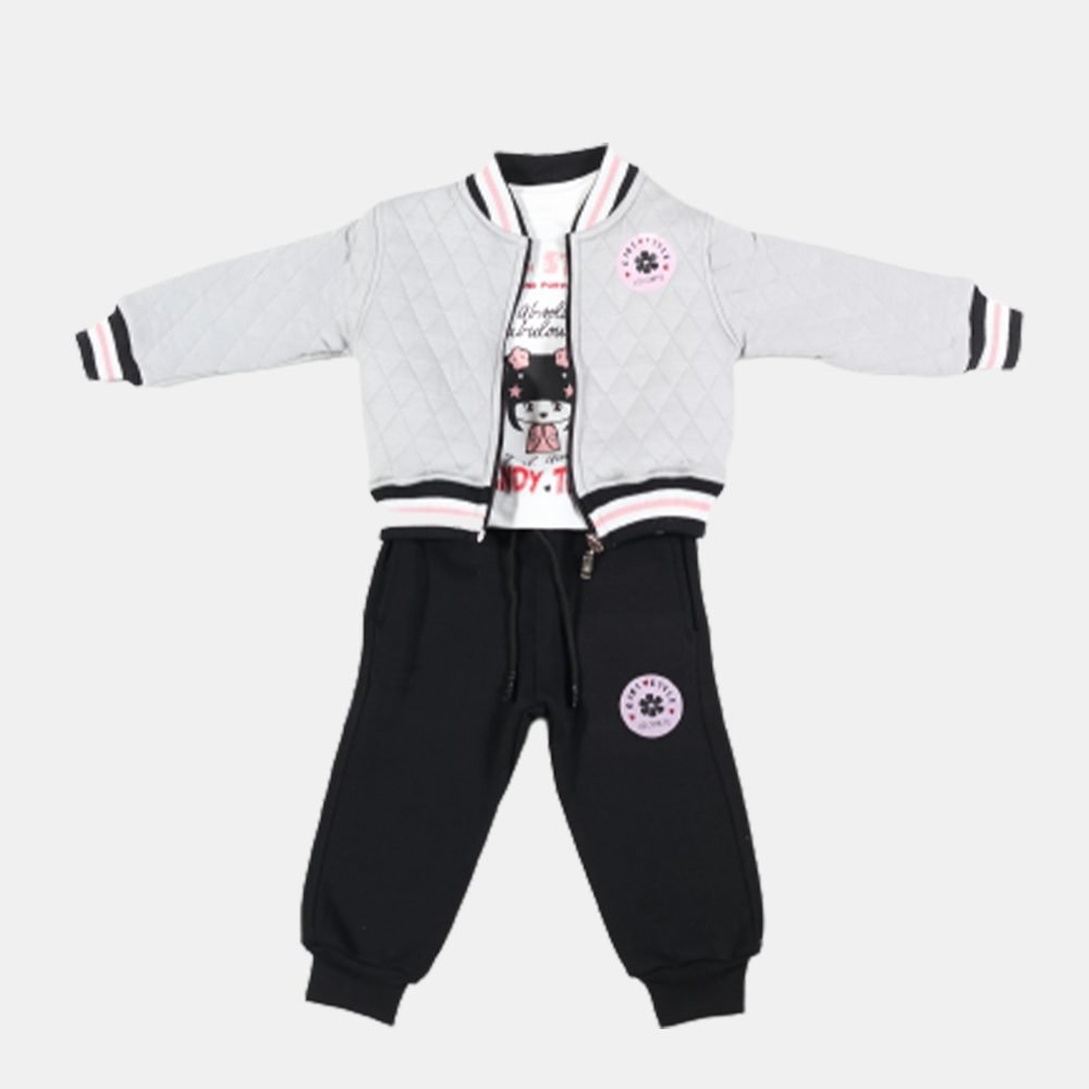 Ensemble jogging 3 pièces Gilet matelasse avec capuche 50 % coton 50 % polyester Pull col rond en molleton 100 % coton Pantalon en molleton 80 % coton 20 % polyester