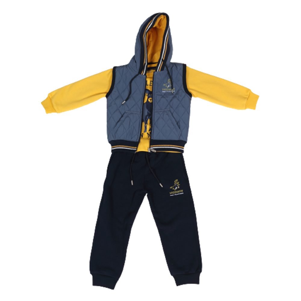Ensemble jogging 3 pièces Gilet matelasse avec capuche 50 % coton 50 % polyester Pull col rond en molleton 100 % coton Pantalon en molleton 80 % coton 20 % polyester